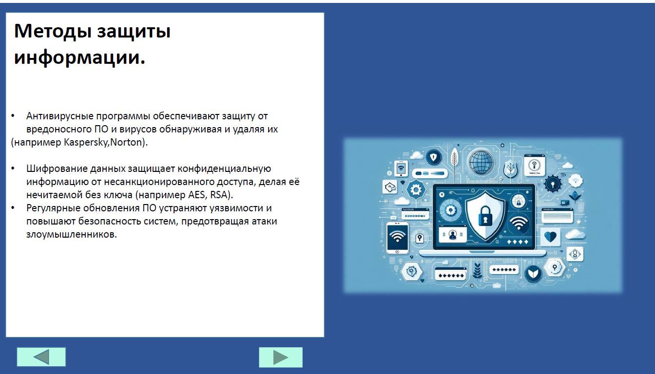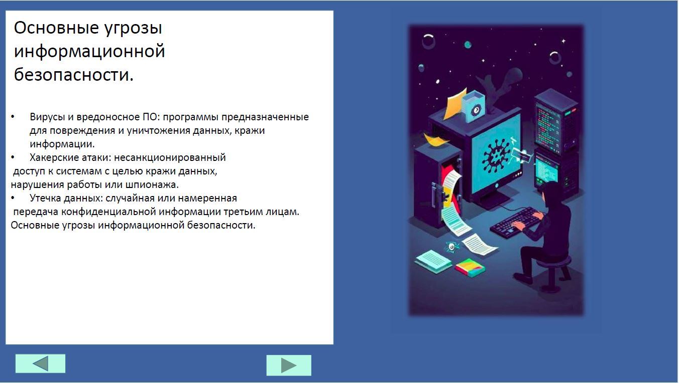 Создала проектный мини курс по информационной безопасности. Методик курса помогает обучающимся быстро понять основные угрозы по безопасности и определить уровни защиты информации.